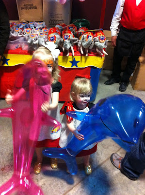 I think the elephants were the most breath-taking part of the circus, but each act was really great. I shut my eyes for most of the scary things and never, ever will I be able to watch a human be shot out of a cannon. And the girls got two large dolphin balloons (Gam attack again) when we were done. That is the perfect circus souvenir, right?